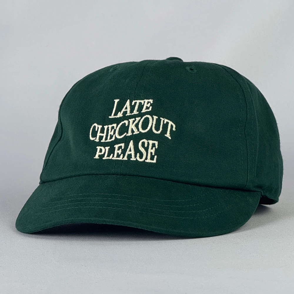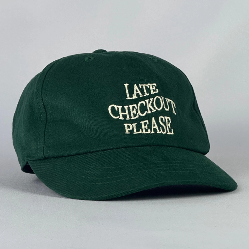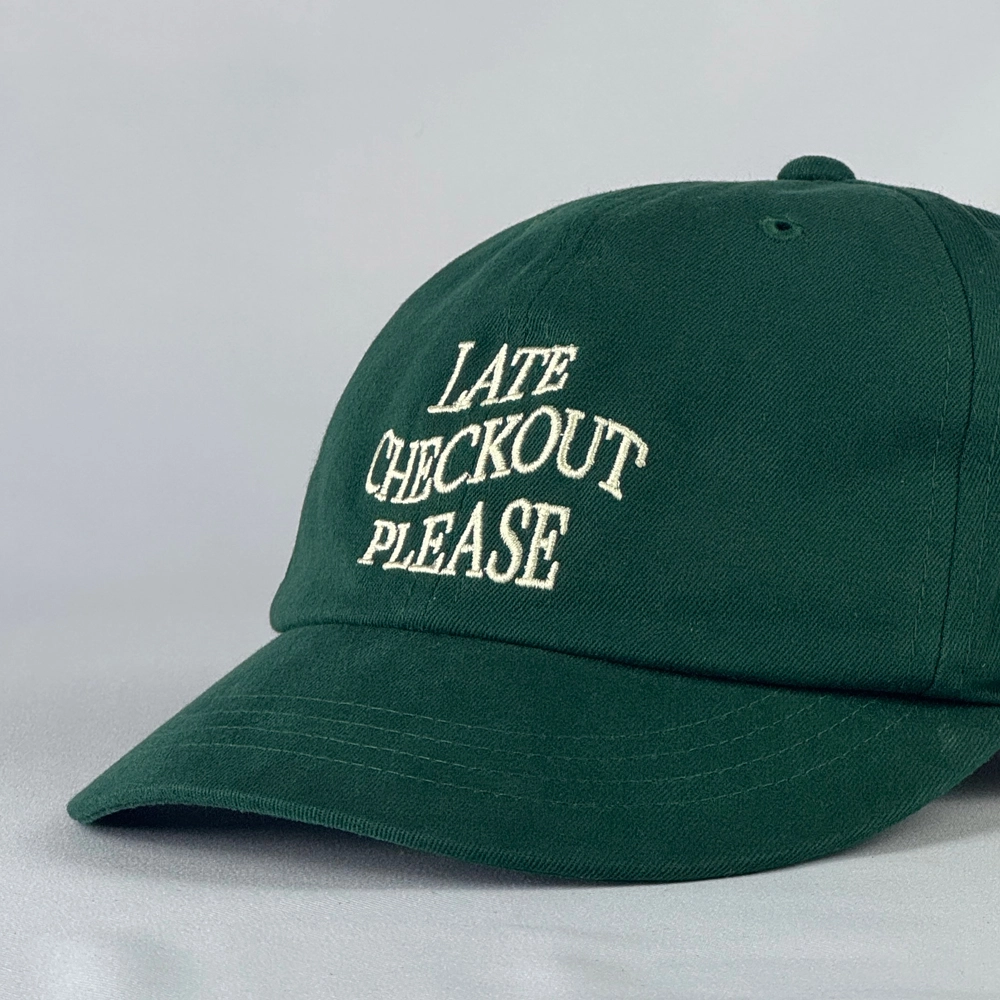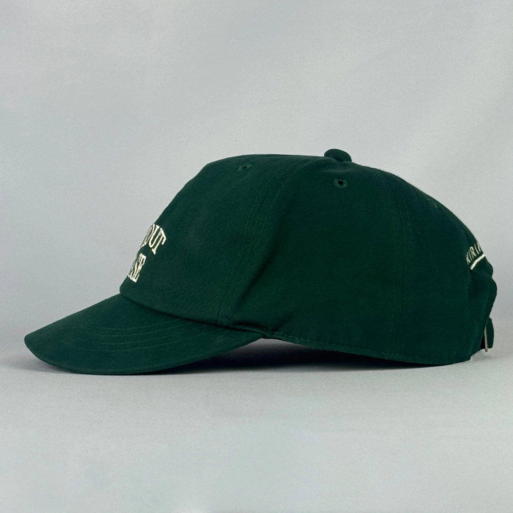 หมวกสีเขียวเข้ม รูปแบบแบรนด์ ปักลายโลโก้ด้านหน้าในราคาคุ้มค่า จากผ้าคอตตอนพรีเมี่ยม