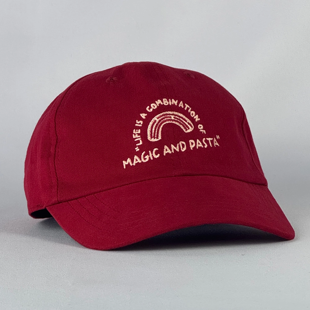 หมวกแบรนด์สีแดงเข้ม ดีไซน์สวย ที่จุดเด่นอยู่ที่สีสันที่สดแต่ไม่โดดมากเกินไป ทำให้นำไปใช้งานได้ทุกที่
