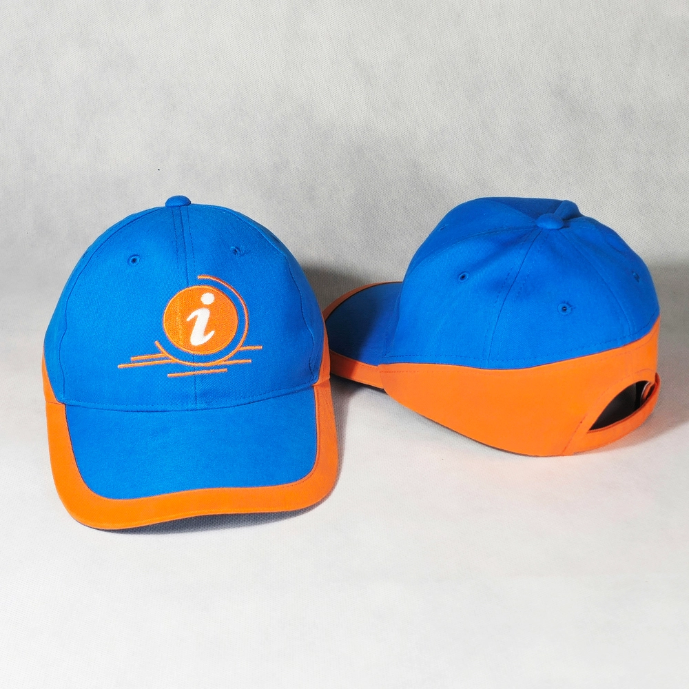 หมวกแก๊ปแบบตัดต่อสีฟ้า ตัดส้ม รูปแบบสวยๆที่สามารถสั่งทำได้ที่โรงงานผลิตหมวกของเรา