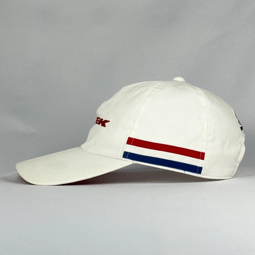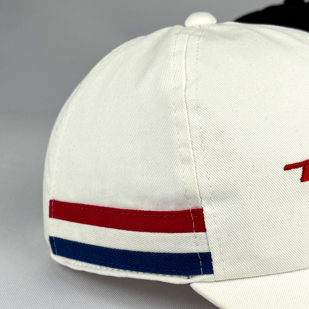 หมวกแก๊ปแบบพับเก็บได้ พร้อมตัดต่อด้านข้างด้วยแถบสีสันสวยงามเป็นลายเอกลักษณ์