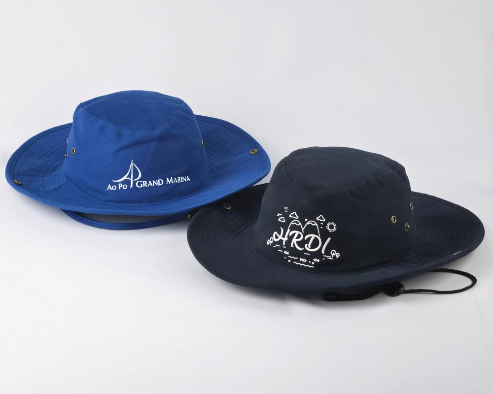 แบบหมวกซาฟารี ลูกค้าสามารถเลือกแบบพร้อมสีหมวกได้ตามต้องการ เพิ่มงานปักโลโก้สวยๆได้