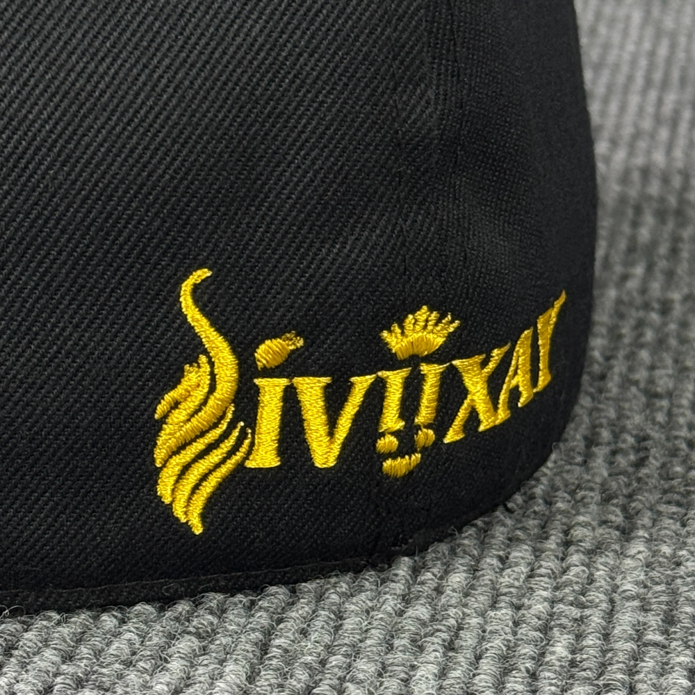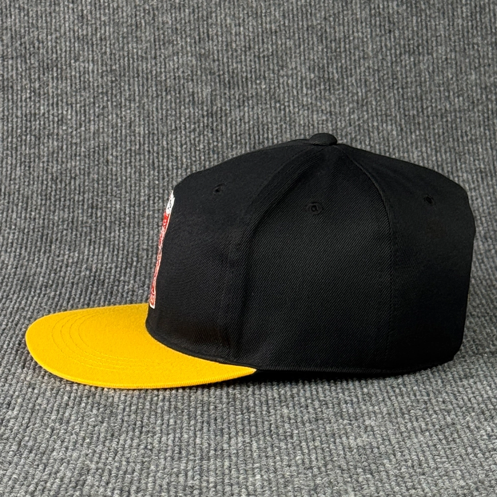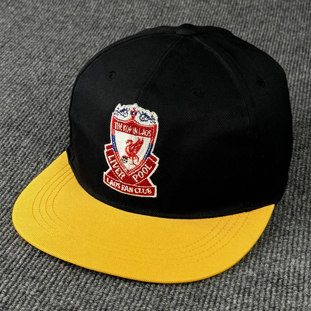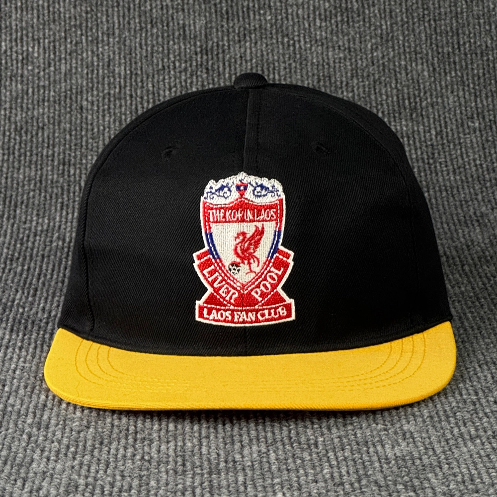 หมวกฮิปฮอปสั่งทำตามแบบของลูกค้า ผลงานหมวก Liver pool ตัวหมวกสีดำ ปีกหมวกสีเหลือง พร้อมงานปักโลโก้สโมสร