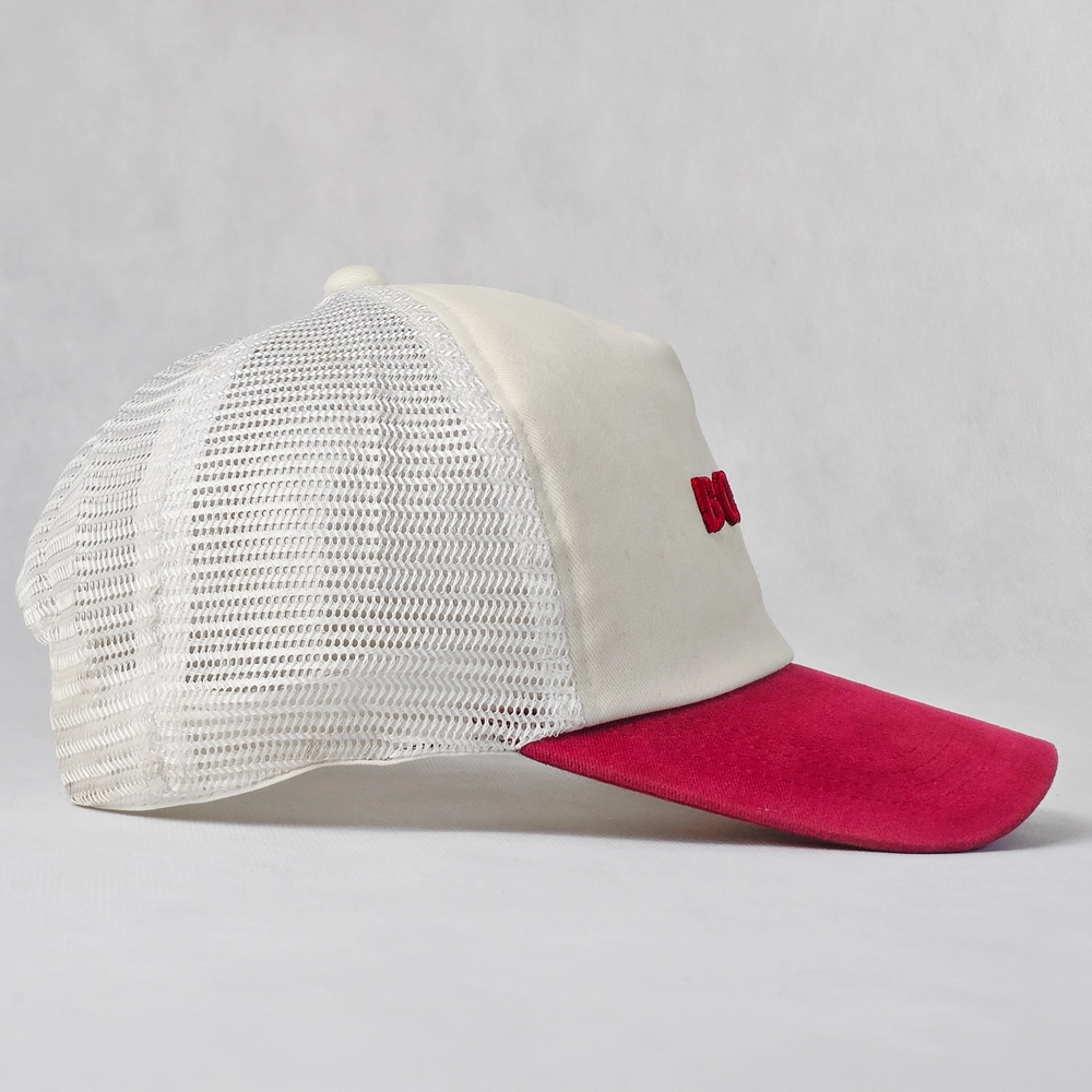 สีหมวก : ทูโทน(2-3สี) – สีขาว#02,สีแดงเลือดหมู#26 + ตาข่าย – สีขาว#02